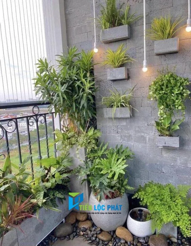 Đá sân vườn như đá phiến, đá trắng muối có thể được sử dụng để trang trí sân thượng hoặc ban công, tạo không gian xanh mát ngay trong nhà.