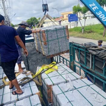 - Đá được giao tận nhà máy tới công trình bằng xe tải, công tơ nơ.
